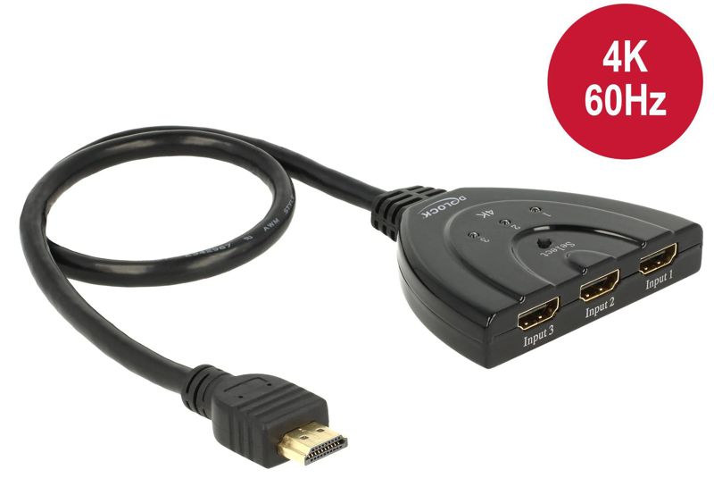 Delock Verteiler 3 Port HDMI Switch 4K/60Hz